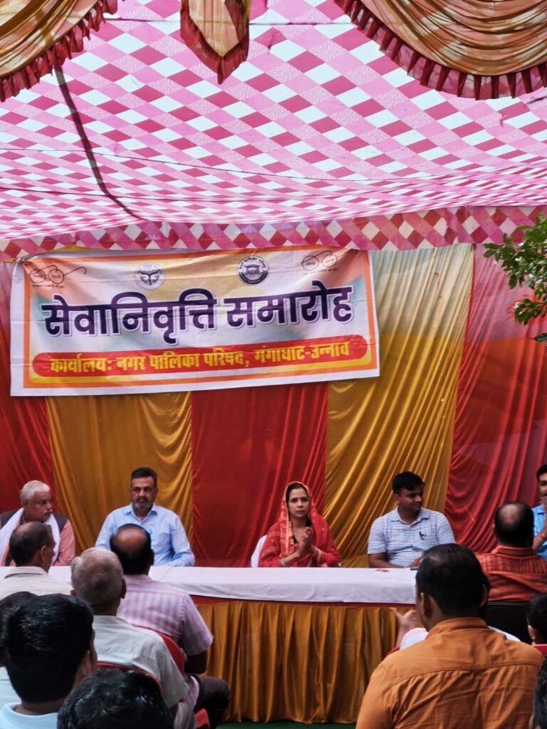 उन्नाव – आज दिनांक 01 सितंबर,2025 को नगर पालिका परिषद गंगा घाट में पालिका कर्मी महेन्द्र कुमार सिंह टैक्स कलेक्टर , संतोष कुमार पांडेय पंप ऑपरेटर एवं नन्हू सफाई मित्र की सेवा निवृत्ति 31 अगस्त 2025 के उपलक्ष्य में कार्यक्रम नगर पालिका प्रांगण में सायंकाल आयोजित किया गया।